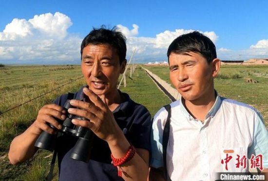 圖為在外出巡草的周增本(左)和索南才讓(右)。(資料圖片) 中新社發(fā) 張得存 攝