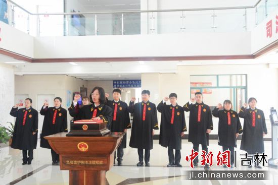 當天,樸香子帶領該院青年法官高舉右拳鄭重宣誓,大廳內(nèi)響起莊嚴洪亮的錚錚誓言。樸香子表示,面對新的形勢和機遇,要融入社會大局,志存高遠、腳踏實地; 要保持精益求精,打磨技藝、久久為功; 要恪守清正廉潔,清清白白辦案、堂堂正正做人。