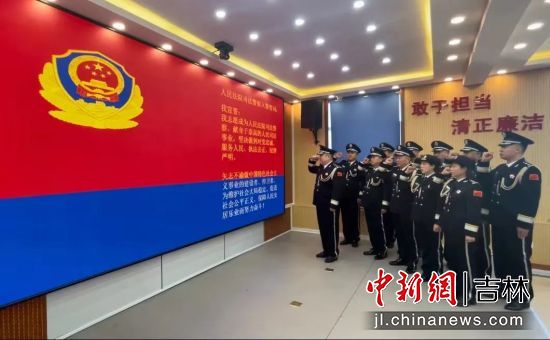 當天,該院全體司法警察身著警禮服整齊劃一、警容嚴整,面對警旗,莊嚴的宣誓:“我志愿成為人民法院司法警察,獻身于崇高的人民司法事業(yè),堅決做到對黨忠誠、服務(wù)人民、執(zhí)法公正、紀律嚴明……”
