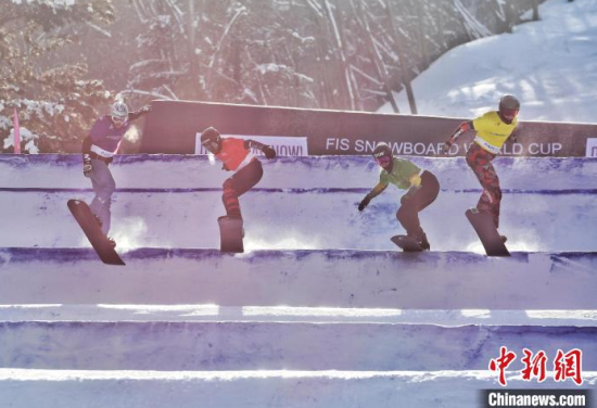 2月2日,2024—2025賽季國際雪聯(lián)單板滑雪障礙追逐世界杯北大湖站迎來收官決賽。圖為選手們正在比賽!≈行律缬浾 石洪宇 攝