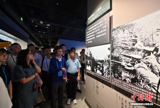 8月11日,吉林長春,香港青年參觀東北淪陷史陳列館。為紀(jì)念中國人民抗日戰(zhàn)爭暨世界反法西斯戰(zhàn)爭勝利80周年,數(shù)十名香港青年走進(jìn)東北淪陷史陳列館,通過館內(nèi)大量珍貴文物和歷史資料,深入了解東北人民在抗戰(zhàn)時(shí)期所經(jīng)歷的苦難歲月以及他們英勇抗?fàn)幍氖论E。中新社記者 張瑤 攝