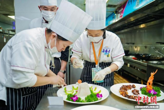 中新社吉林11月17日電 (記者 石洪宇)吉林市第一屆中醫(yī)人參藥膳大賽17日拉開帷幕。18個團(tuán)隊現(xiàn)場烹制近百道藥膳,推動中藥材“從藥柜走向餐桌”。主辦方介紹,比賽的目的之一是做好創(chuàng)新,以“藥食同源”理念吸引年輕人的關(guān)注。