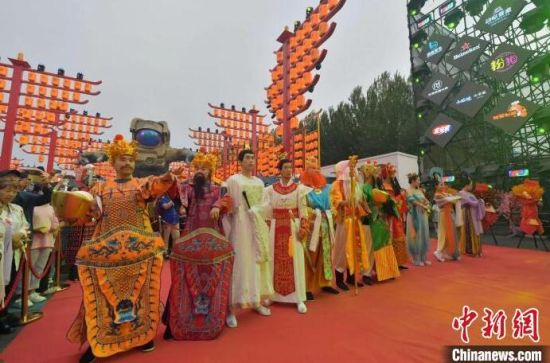 當(dāng)晚,長春電影嘉年華結(jié)合影視元素,打造了30組傳統(tǒng)神話中的人物 IP進(jìn)行沉浸式表演和巡游。同時(shí),以凈月蟠桃盛宴為主題的活動也同步上演。