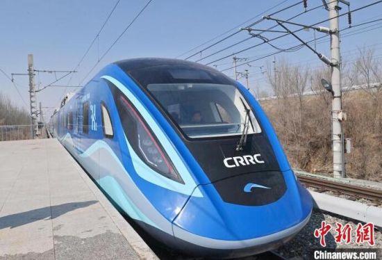 3月21日,全球首列氫能源市域列車在長春進行時速160公里滿載運行試驗。中新社記者 張瑤 攝