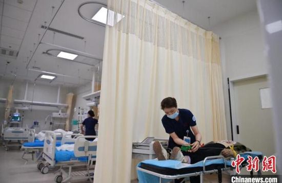 張力(中)在護理病人。急診科的工作環(huán)境突發(fā)情況多、體力消耗大,所以對急診護士的抗壓能力和應變能力要求也更高!埇 攝
