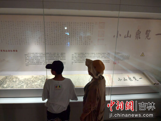 7月23日,游客在吉林長春偽滿皇宮博物院參觀《〈登興安大嶺歌〉并董邦達(dá)設(shè)色圖卷》真跡。此卷是乾隆帝與詞臣畫家董邦達(dá)共同合作完成的書畫佳作,創(chuàng)作于1749年。