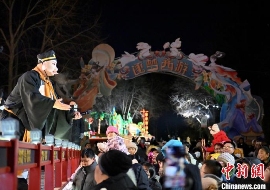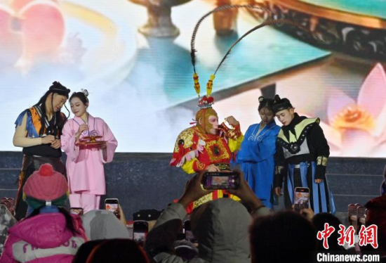 12月5日,在長春市動(dòng)植物公園,“孫悟空”在與游客互動(dòng)。當(dāng)天,該園“西游記主題樂園”重新開放,吸引全國各地游客"沉浸式”體驗(yàn)中國傳統(tǒng)文化。 中新社記者 張瑤 攝