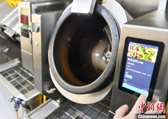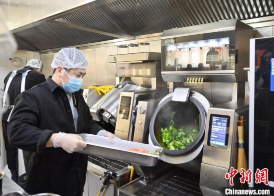 2月11日,吉林長春,工作人員在智慧敬老食堂操作炒菜機(jī)器人進(jìn)行烹飪。據(jù)了解,在這個(gè)智慧敬老食堂用餐的老年人不僅能品嘗到由炒菜機(jī)器人制作的菜品,還能通過取餐通道旁邊的電子屏幕查看菜品的營養(yǎng)成分等信息。中新社記者 張瑤 攝
