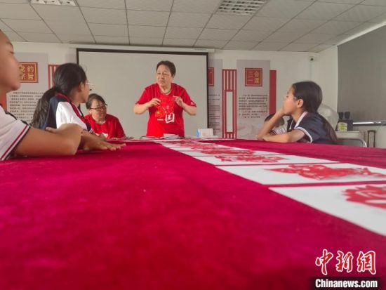 李影蘭正在給非遺手工愛(ài)好者講解剪紙技術(shù)!∈橛 攝